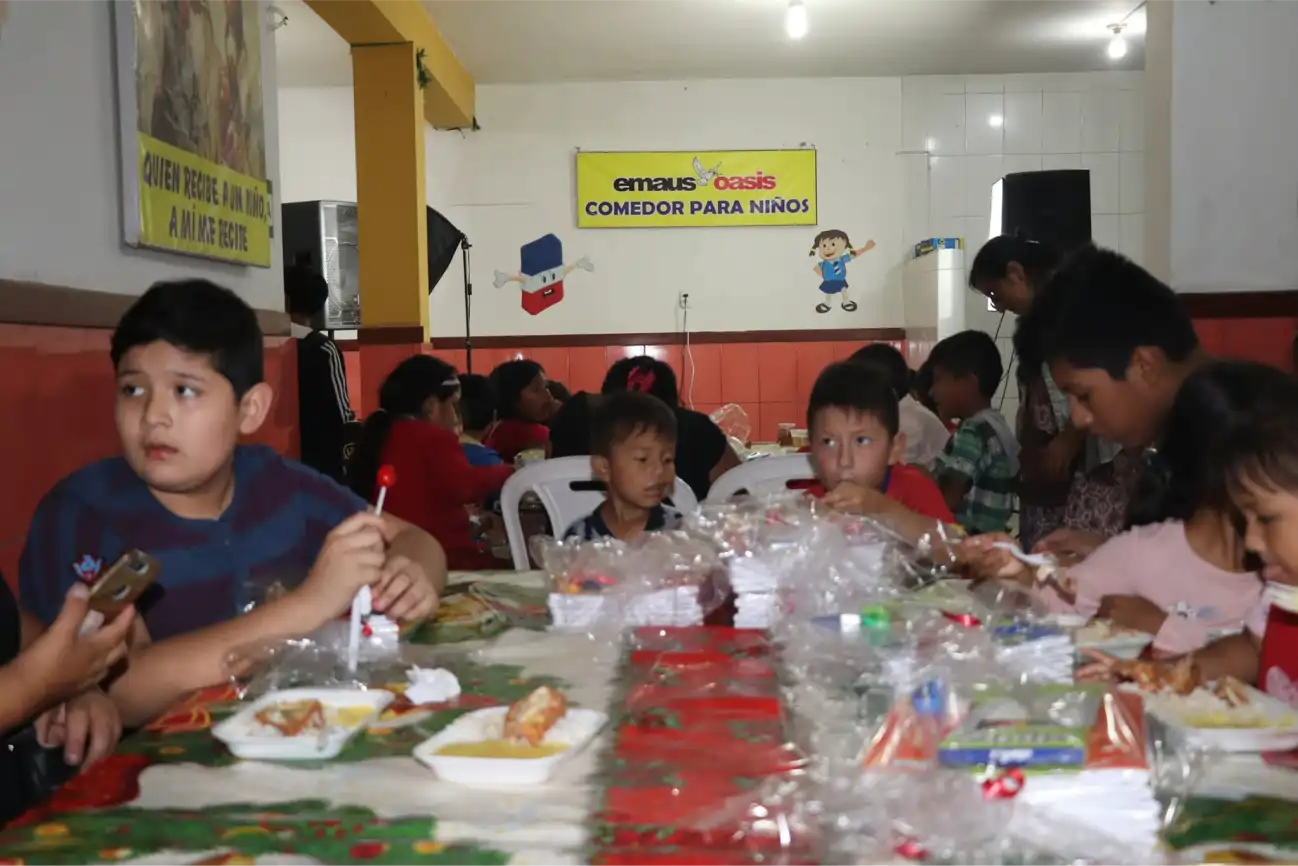 El Programa de Comedor de Oasis Emaús nace del compromiso con la nutrición y el bienestar de los niños y adolescentes de Villa María del Triunfo y Villa El Salvador. Sabemos que una alimentación adecuada es clave para su crecimiento, desarrollo escolar y calidad de vida.