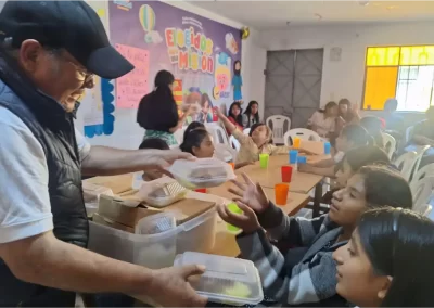 Desde nuestros inicios, hemos brindado desayunos y almuerzos nutritivos a quienes más lo necesitan, creando un espacio donde no solo se alimenta el cuerpo, sino también el corazón. Aquí, los niños reciben cariño, atención y el acompañamiento de voluntarios comprometidos con el cambio social.
